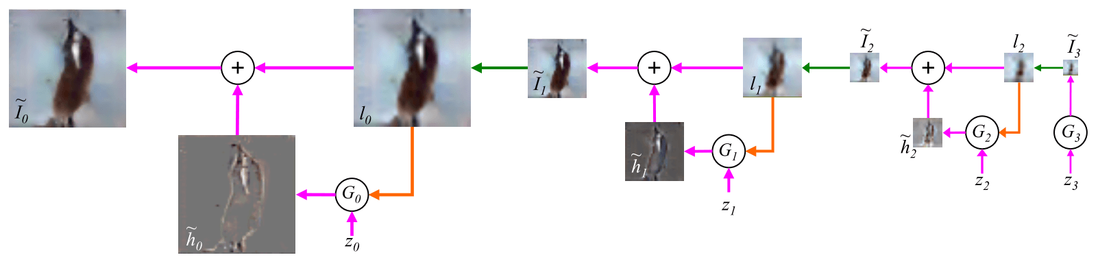 - Step1: 令$\tilde I_{K+1}=0$,则$\tilde I_K = G_K(z_K)$。即$G_K$不是CGAN,其他都是CGAN;
