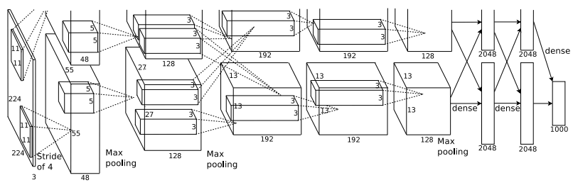 更宽更深的LeNet,并且采用了ReLU、Dropout、数据增强、多GPU、LRN。奠定了DL在CV中的地位。